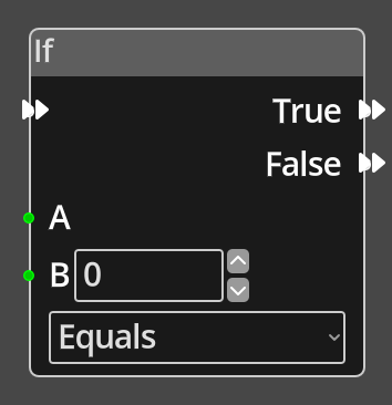 "branching" node, it will perform a comparison of the two values A and B using