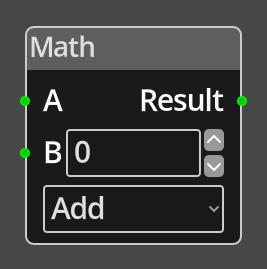 These "small items" are called Nodes, Kwyll provides a basic set of Nodes that can be combined to do a variety of things, the process of "wiring" them together enables each Node to either pass data to another node, or to control the flow of the "program". Some of the Nodes are very simple, such as the Math Node, whose only job is to take in two values, perform a basic mathematical operation on them, add, subtract, multiply or divide, and then output the result. Others are more complex and perform a detailed operation in and of themselves based on the input and parameters.