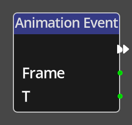 - As with all trigger nodes, an Animation Event Node has only a single flow port on the output side. There is no input flow to a trigger node as it is the origin of a flow.