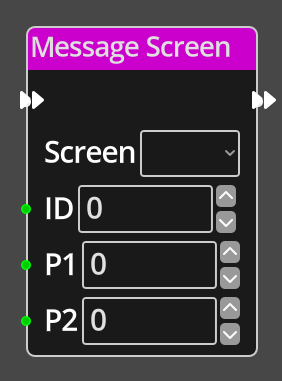 The Message Screen Node sends a message to specified screen. The screen logic should