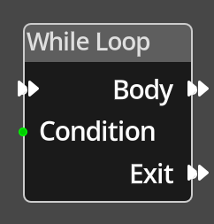 The While Loop Node will run the node flow that is connected to its Body output port