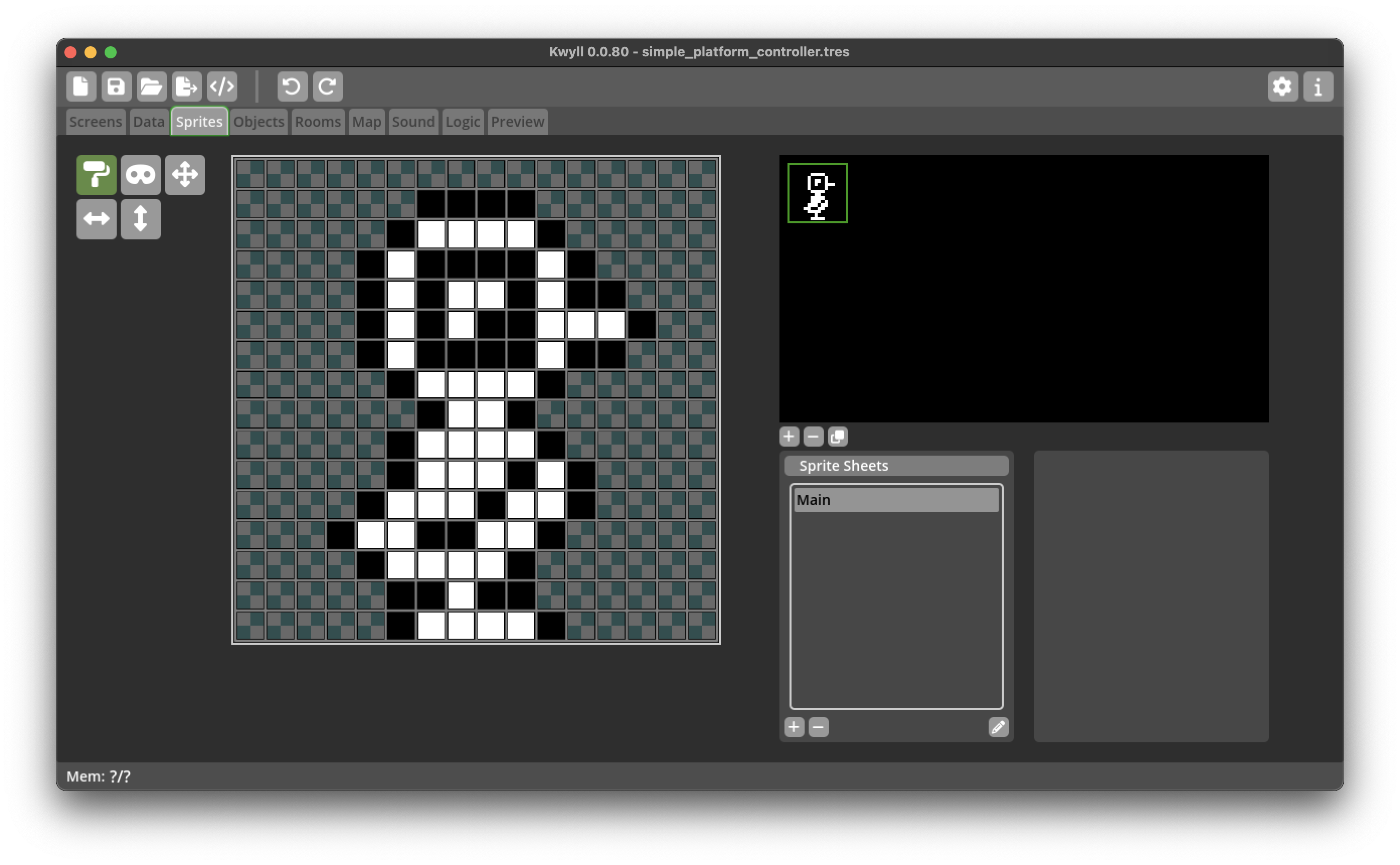 First, lets start by creating a sprite for our character, something simple as we're not focused on animation for this tutorial.